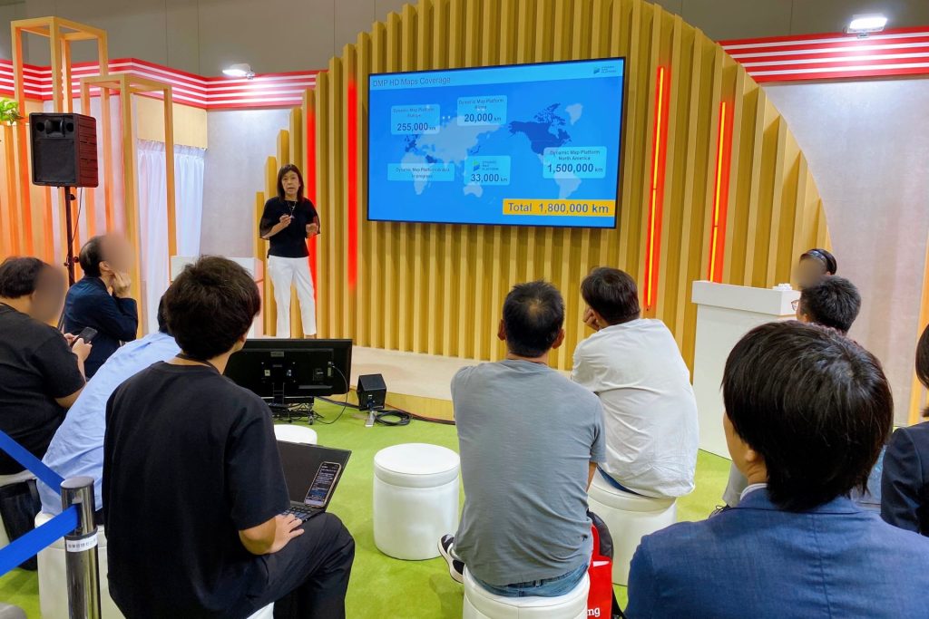 ダイナミックマッププラットフォームは「人口に頼らない社会」をテーマとしたエリアにブースを構え、当社の高精度3次元データを活用したソリューションについて展示を行いました。