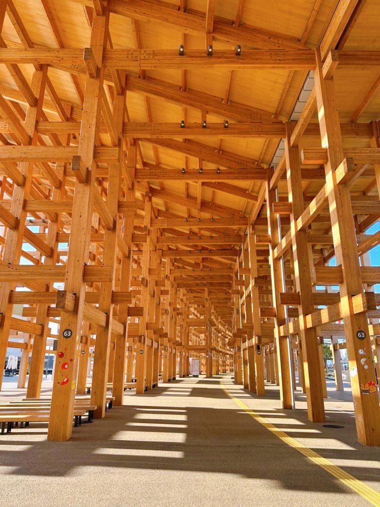 各国パビリオンの溢れる個性を木製の大屋根リングが一定の秩序で包み込む光景は、今の世界を象徴するようでした。