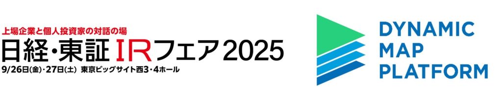 ダイナミックマッププラットフォーム株式会社(本社:東京都渋谷区、代表取締役社長CEO: 吉村 修一、以下「当社」)は、2025年9月26日(金)、27日(土)に東京ビッグサイト西3・4ホールで開催される「第20回 日経・東証IRフェア 2025」に出展します。なお、当社は2025年3月に東京証券取引所グロース市場(証券コード:336A)へ新規上場しており、今回のような個人投資家向けイベントへの出展は当社として初の取り組みです。