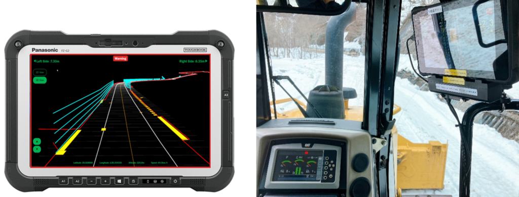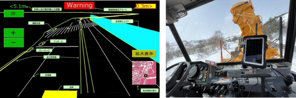 SRSSは、自動運転車にも使われる当社の高精度3次元地図データと高精度な位置情報を組み合わせ、除雪作業のガイダンスを行うものです。道路形状や道路構造物の位置などの情報に加え、投雪禁止箇所や注意を要するポイントなど、除雪作業に関するノウハウを専用の地図に落とし込み、タブレット端末で道路状況を可視化することで“除雪DX”を実現しています。